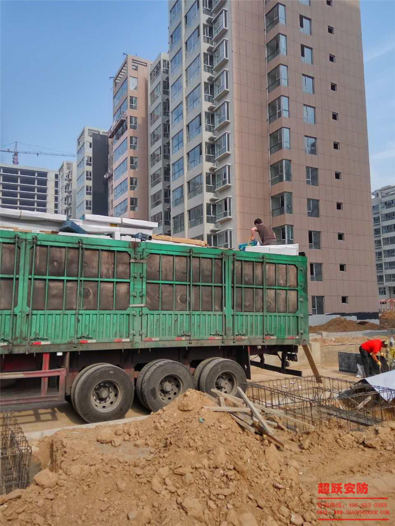 忻州市中海建嘉苑二區(qū)項(xiàng)目部工地防火門卸車作業(yè)圖片