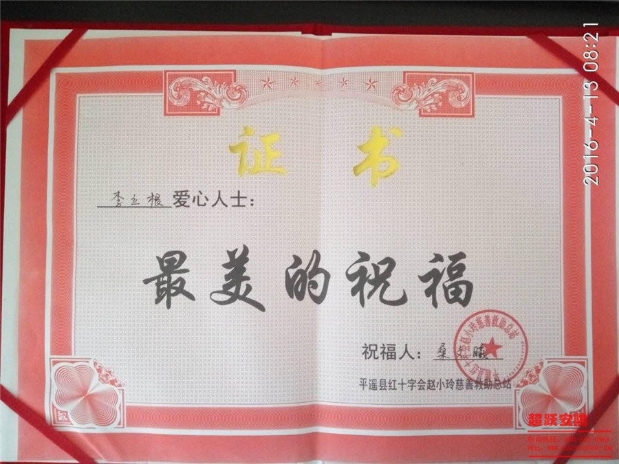 2016年山西超躍安防董事長李立根先生參加平遙縣紅十字會趙曉玲慈善救助,而被救助人回饋給李董事長愛心人士證書,大愛在人間。讓我們對愛心人士點個贊!??!